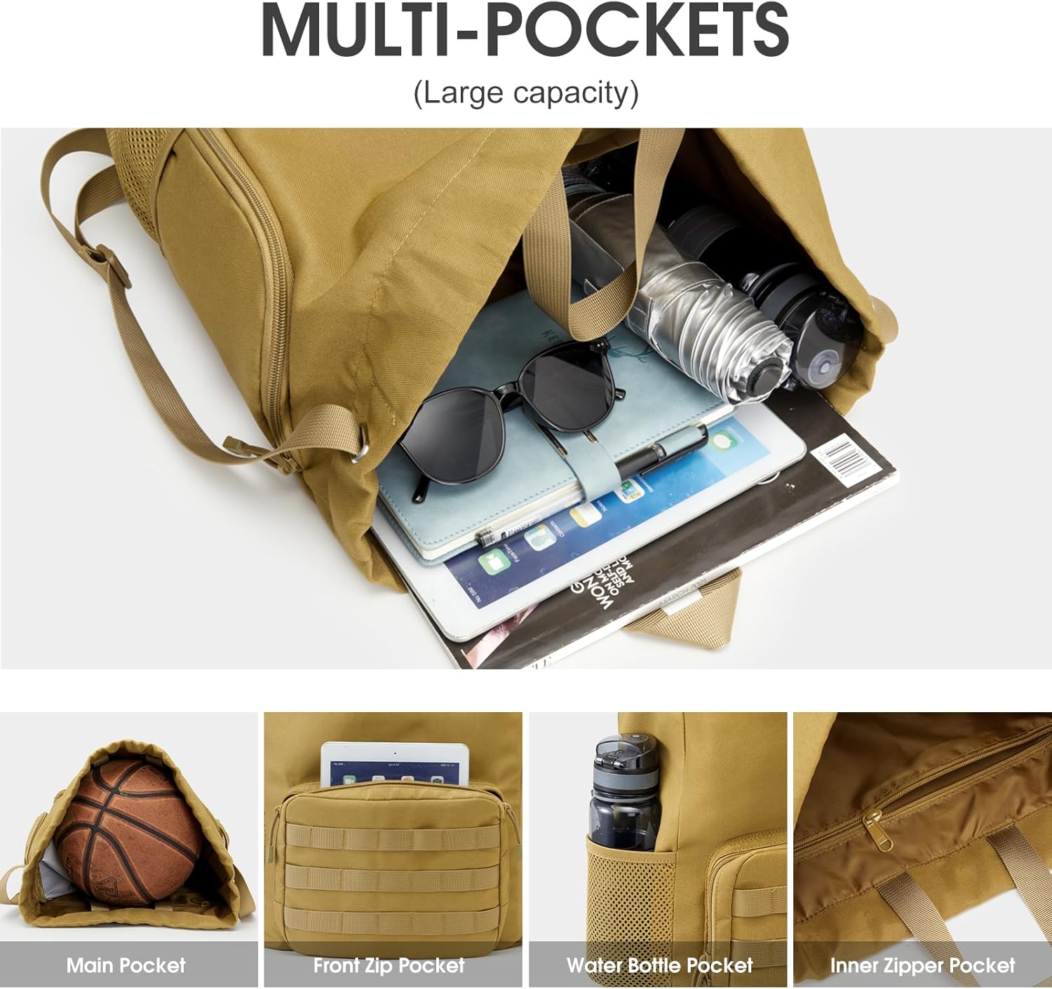- 【Multifunctional Pockets, Easy Access】 This basketball bag backpack has separate compartments with different functions, perfectly sorting your items. The main pocket with drawstring closure is enough to hold your personal items, front zipper pocket can easy to access tissue or keys you don’t want to dig for, 2 side mesh pocket keeps water bottle or umbrella and 1 interior wall zip pocket and 2 interior wall pockets can hold small valuables such as wallet, ID cards, etc.