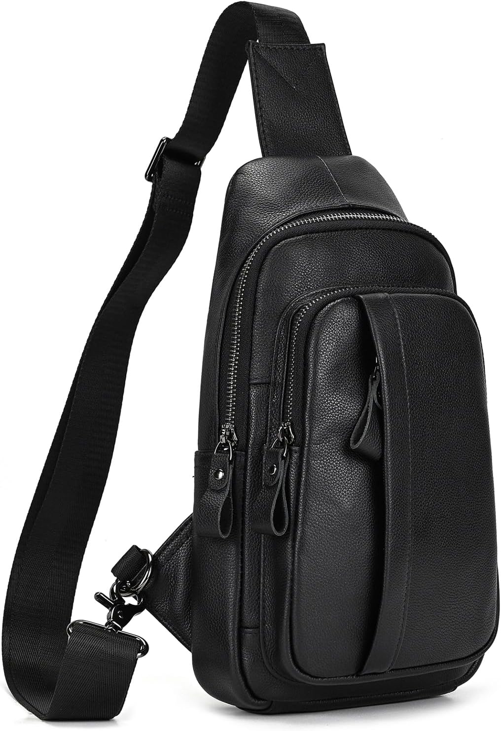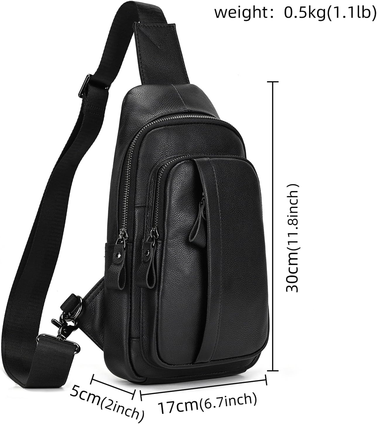 Fashion Pure Genuine Leather Sling Bag for Men Everyday Cross Body Chest Shoulder Messenger Bag Multipurpose Business Casual Outdoor Bag