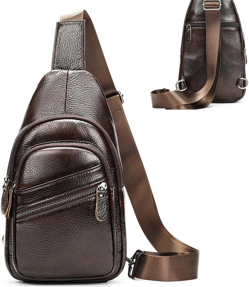Genuine Leather Sling Bag for Men and Women Crossbody Shoulder Bag Sling Backpack Chest Purse Cross Body Pouch